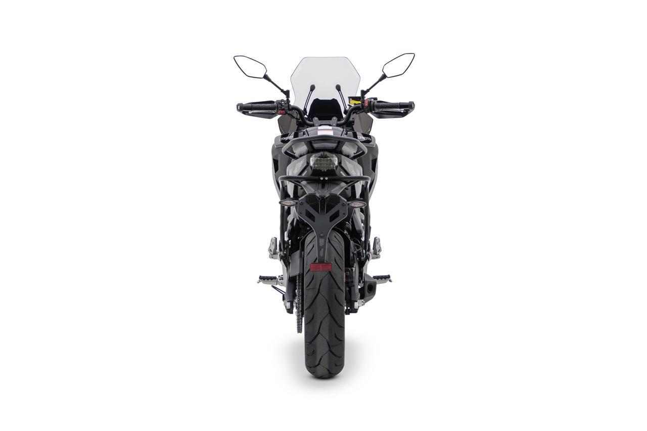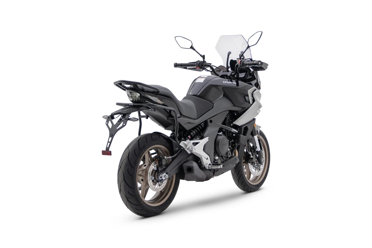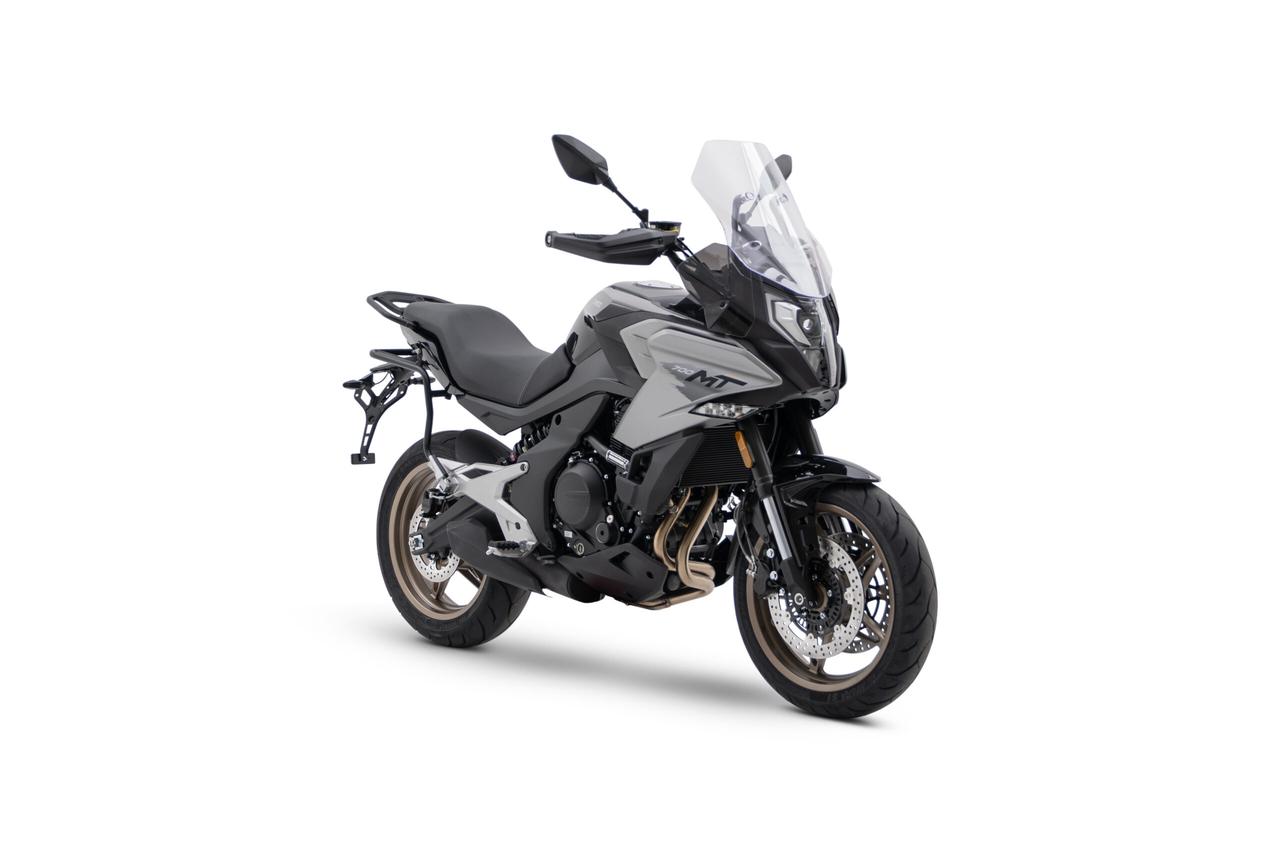 Gli accessori offerti con la CFMoto 700MT non si limitano solo alla tecnologia. Troviamo anche comodi supporti per le valige laterali, maniglione in alluminio per il passeggero, paramani e un parabrezza regolabile.