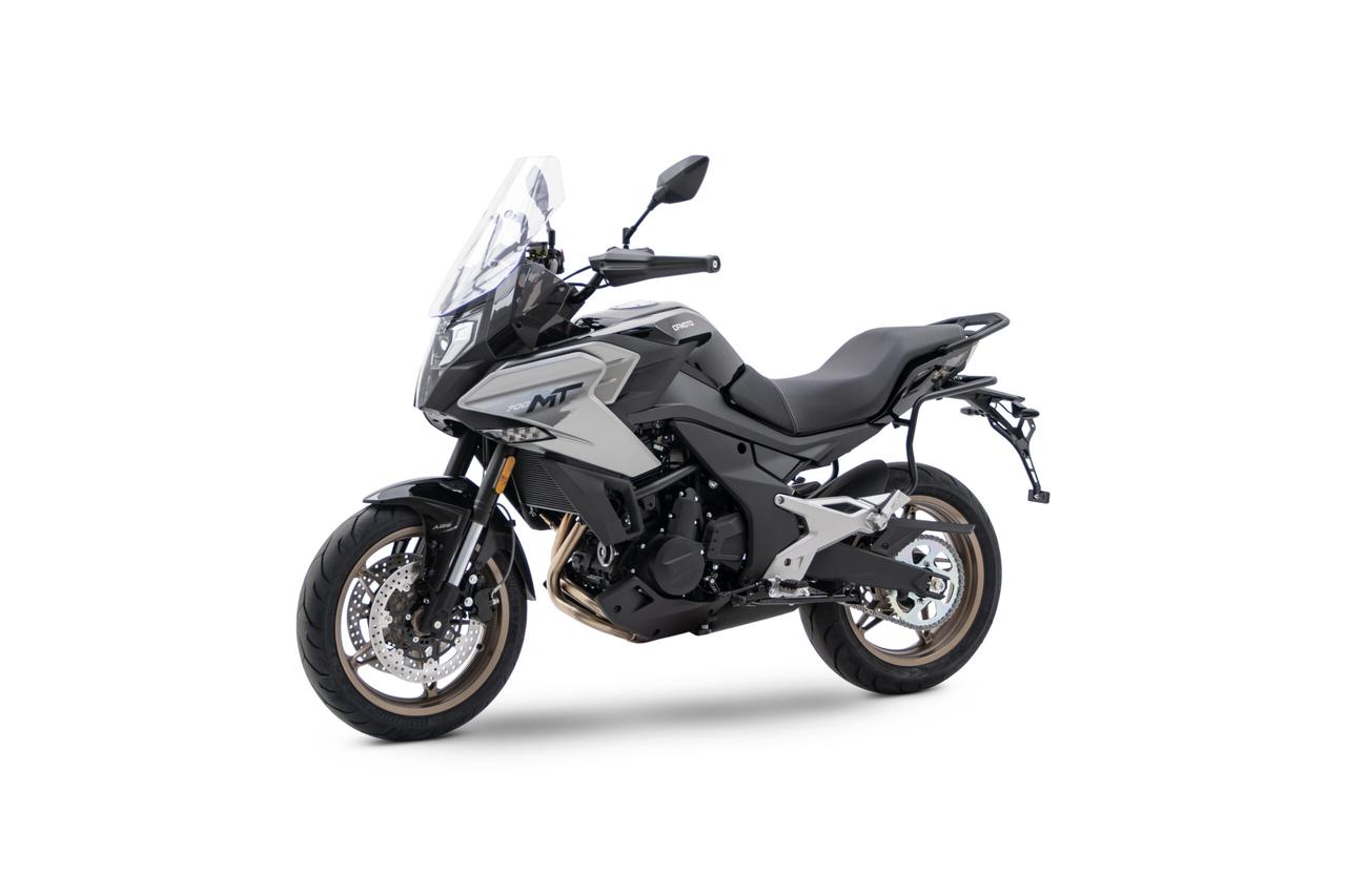 Per quanto riguarda gli pneumatici, la 700MT è equipaggiata con CST MIGRA S1 da 120/70ZR17 all’anteriore e 160/60ZR17 al posteriore. I freni a doppio disco anteriore da 300 mm e posteriore da 240mm, arricchiti da un moderno sistema ABS a doppio canale, assicurano una frenata sicura e controllata.