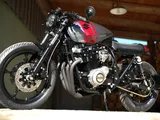 Le ruote sono un altro elemento di grande attenzione. Dotate di mozzi lavorati CNC, raggi in acciaio inossidabile e cerchi aftermarket, montano pneumatici Bridgestone Battlax BT-45, ideali per offrire un’aderenza ottimale su strada. L’impianto frenante è stato completamente rivisitato: le pinze Brembo, provenienti da una Ducati 749, sono state installate tramite adattatori in alluminio su misura, garantendo prestazioni di frenata superiori.