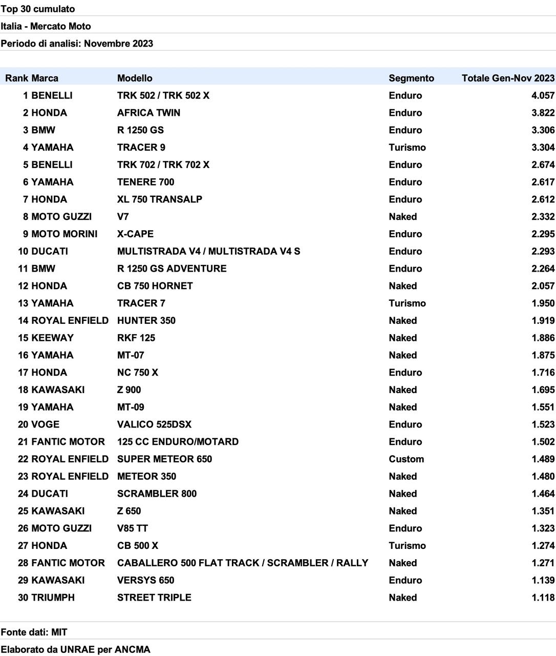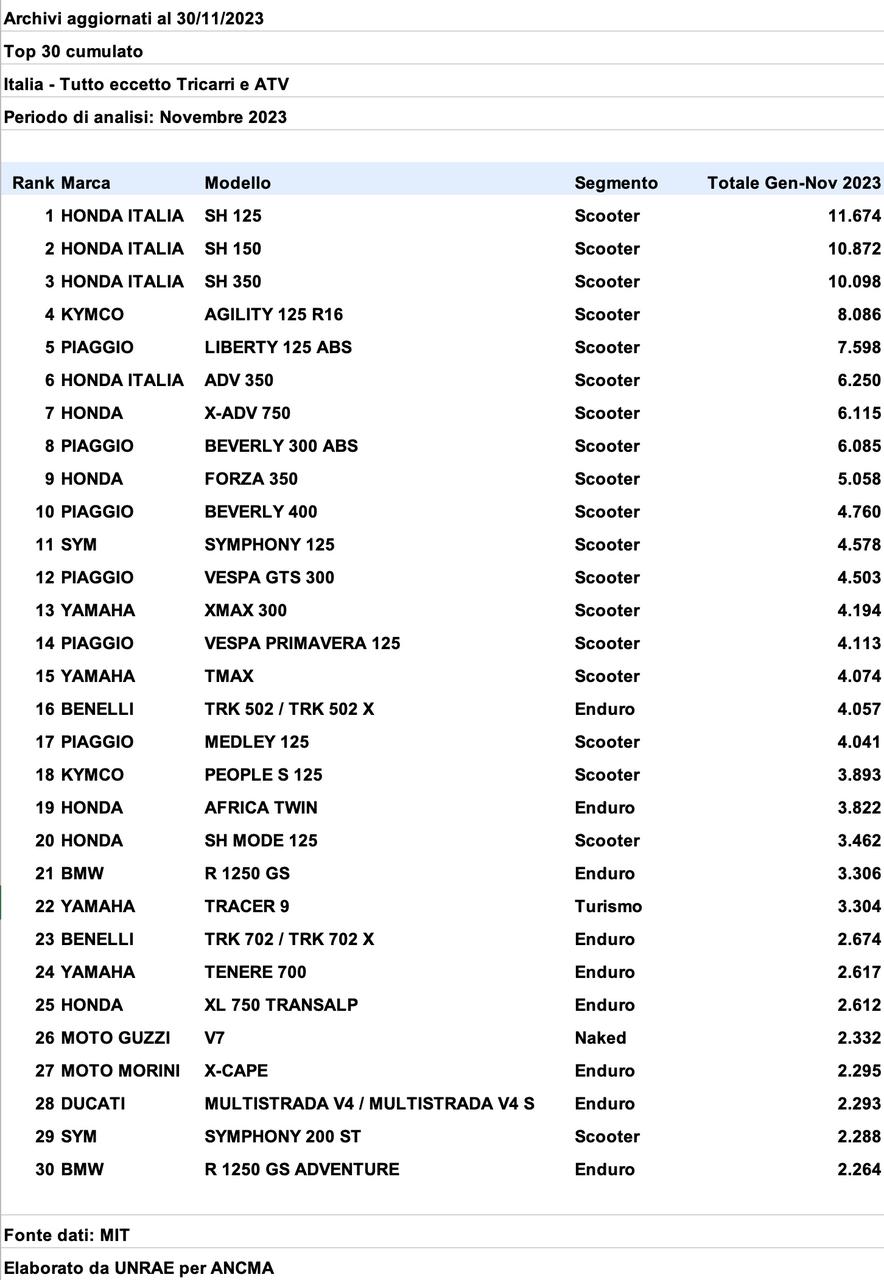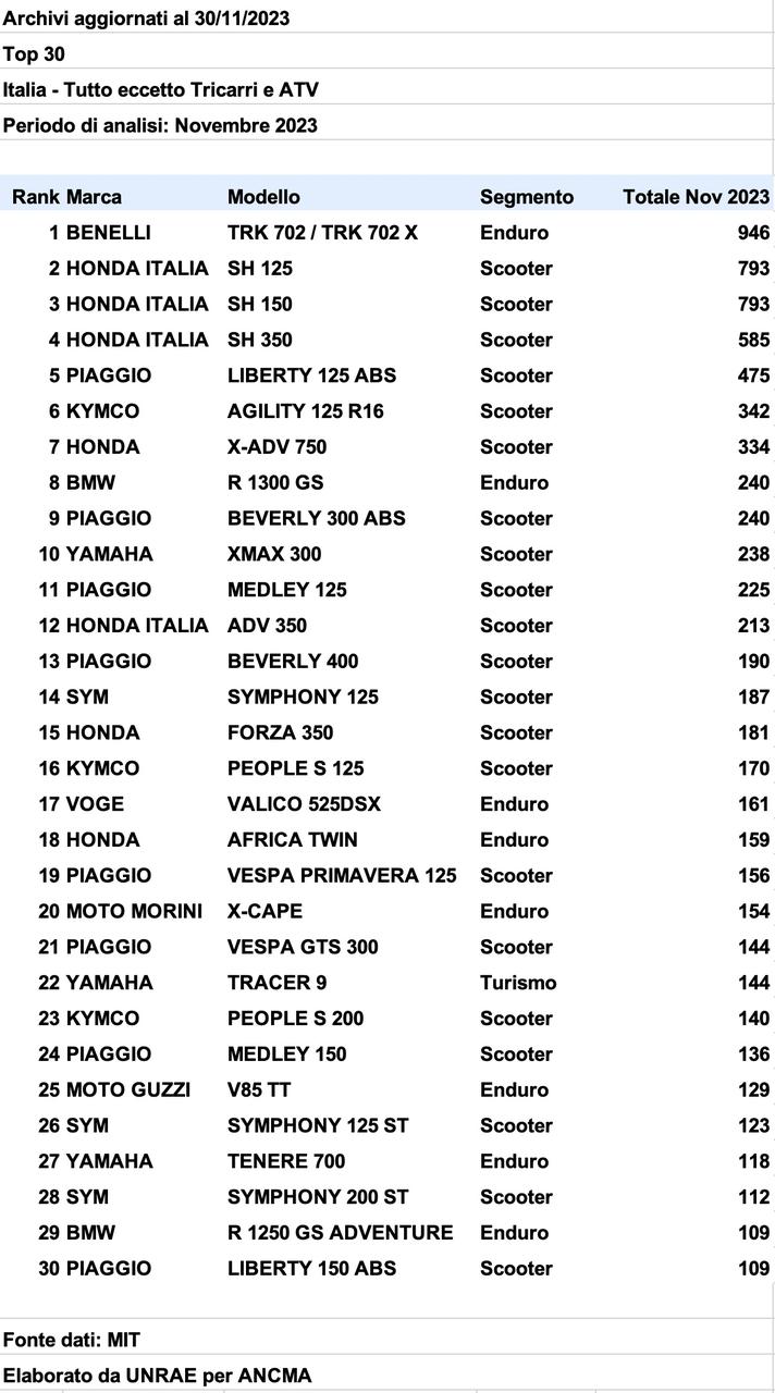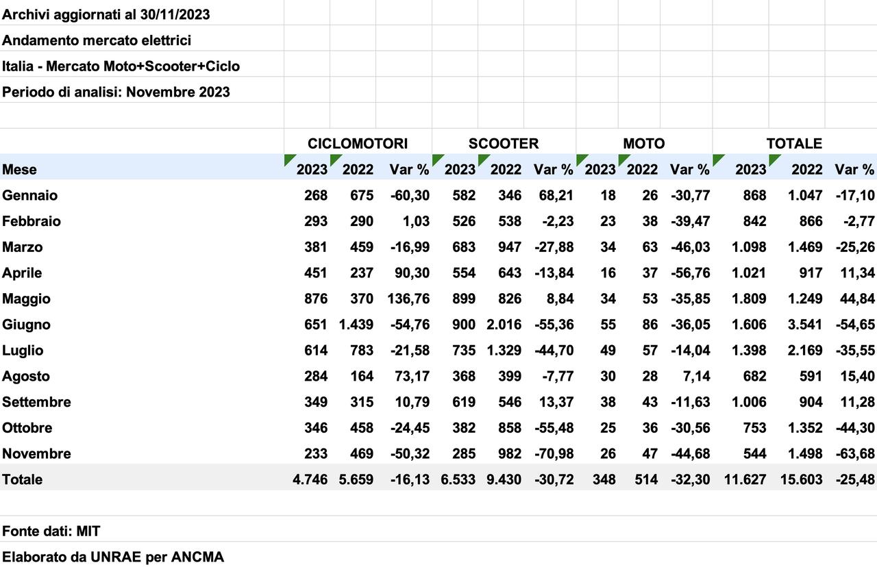 Mercato due ruote in Italia: quasi 16.800 unità vendute a novembre 2023