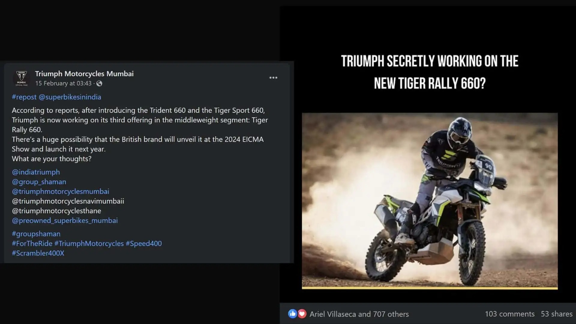 Un post su Facebook della concessionaria Triumph di Mumbai ha alimentato le voci sul possibile arrivo di una nuova Tiger Rally 660
