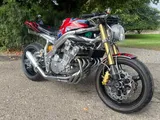 Elemento distintivo della moto è il dual headlight artigianale, sviluppato in collaborazione con Dodo di Wasaka Motorcycle: un componente che non solo dona carattere al frontale, ma garantisce anche funzionalità e leggerezza, divenendo il fulcro estetico del progetto. L’attenzione ai dettagli prosegue con il forcellone in alluminio firmato Scarlet Racing, progettato per migliorare la rigidità e la risposta dinamica della ciclistica, e con lo scarico completo Over Racing, che oltre a conferire una nota sportiva contribuisce all’ottimizzazione delle prestazioni.