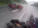 Caduta in moto sull'asfalto allagato