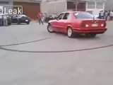 Terribile incidente tra una moto e un'auto che fa drifting