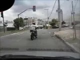 Motociclista dà un calcio a un\'auto ma finisce a terra