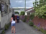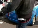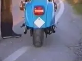 Un cretino in moto fa lo spavaldo nel centro commerciale