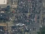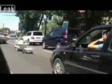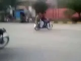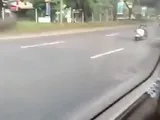 Motociclista cade alle spalle di un reporter durante TG brasiliano