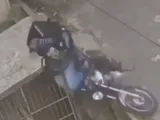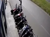 Parcheggia nel posto sbagliato e la moto cade dalle scale (Video)
