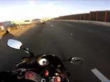motorcycle dodges wreck on freeway