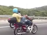 Un modo insolito di viaggiare in moto. Da non imitare!